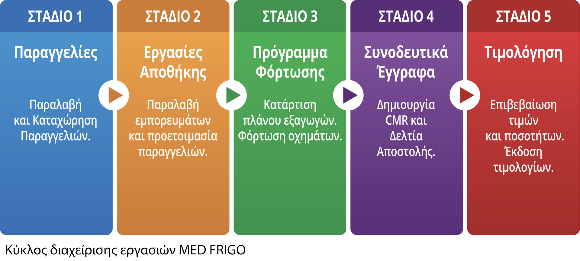 Η MED FRIGO έχει εξελίξει ένα σύγχρονο σύστημα διαχείρισης παραγγελιών, βασισμένο στο σύστημα διαχείρισης αποθεμάτων (WMS).